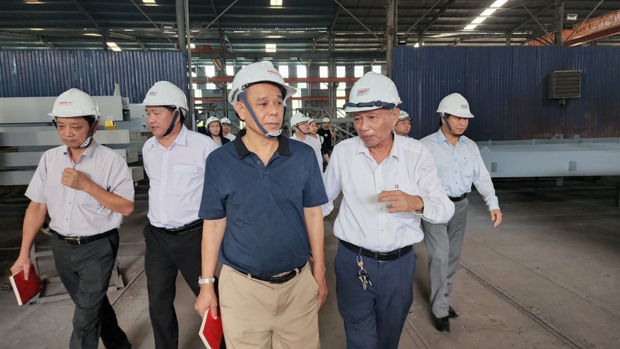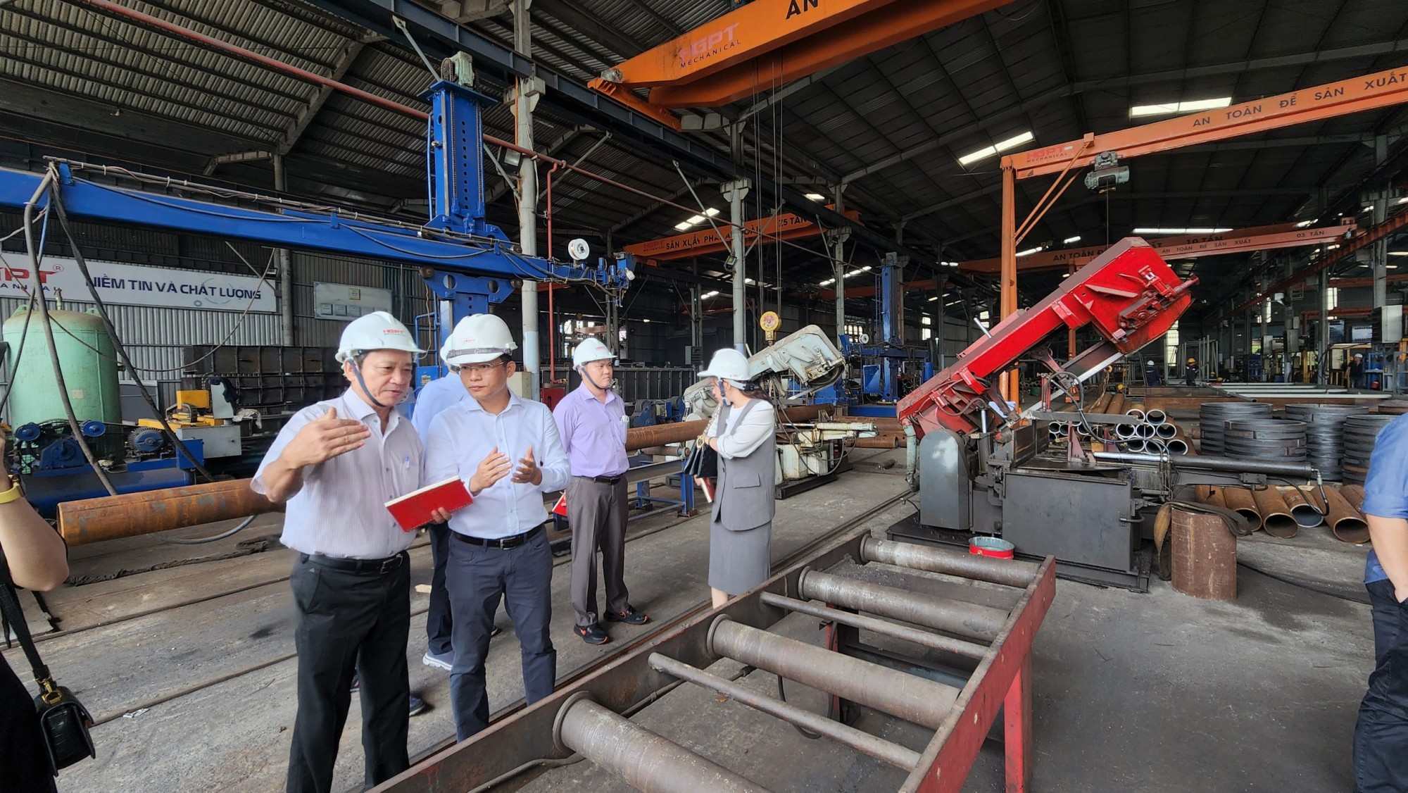 Đón tiếp đoàn, ông Hà Giang – Chủ tịch hội Cơ khí và đồng thời là Chủ tịch HGPT Mechanical cùng Tổng giám đốc Hà Đức Hùng đã chào đón và giới thiệu, tham quan nhà xưởng cơ khí Hà Giang Phước Tường với tổng diện tích hơn 24.000m2 .