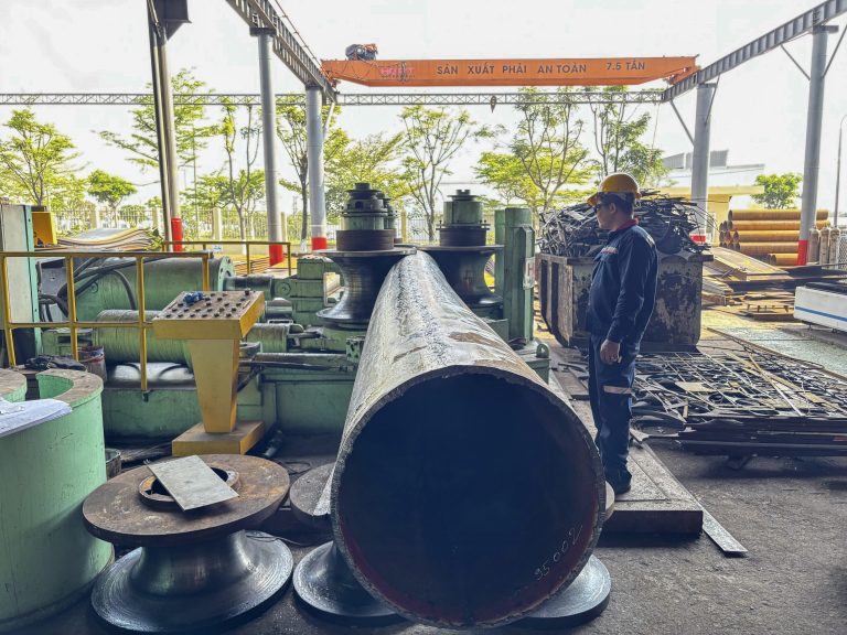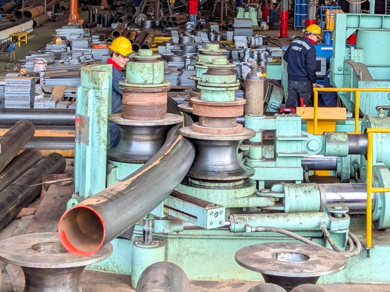 1. Precision Fabrication – Steel members are bent into complex curves with minimal tolerance.