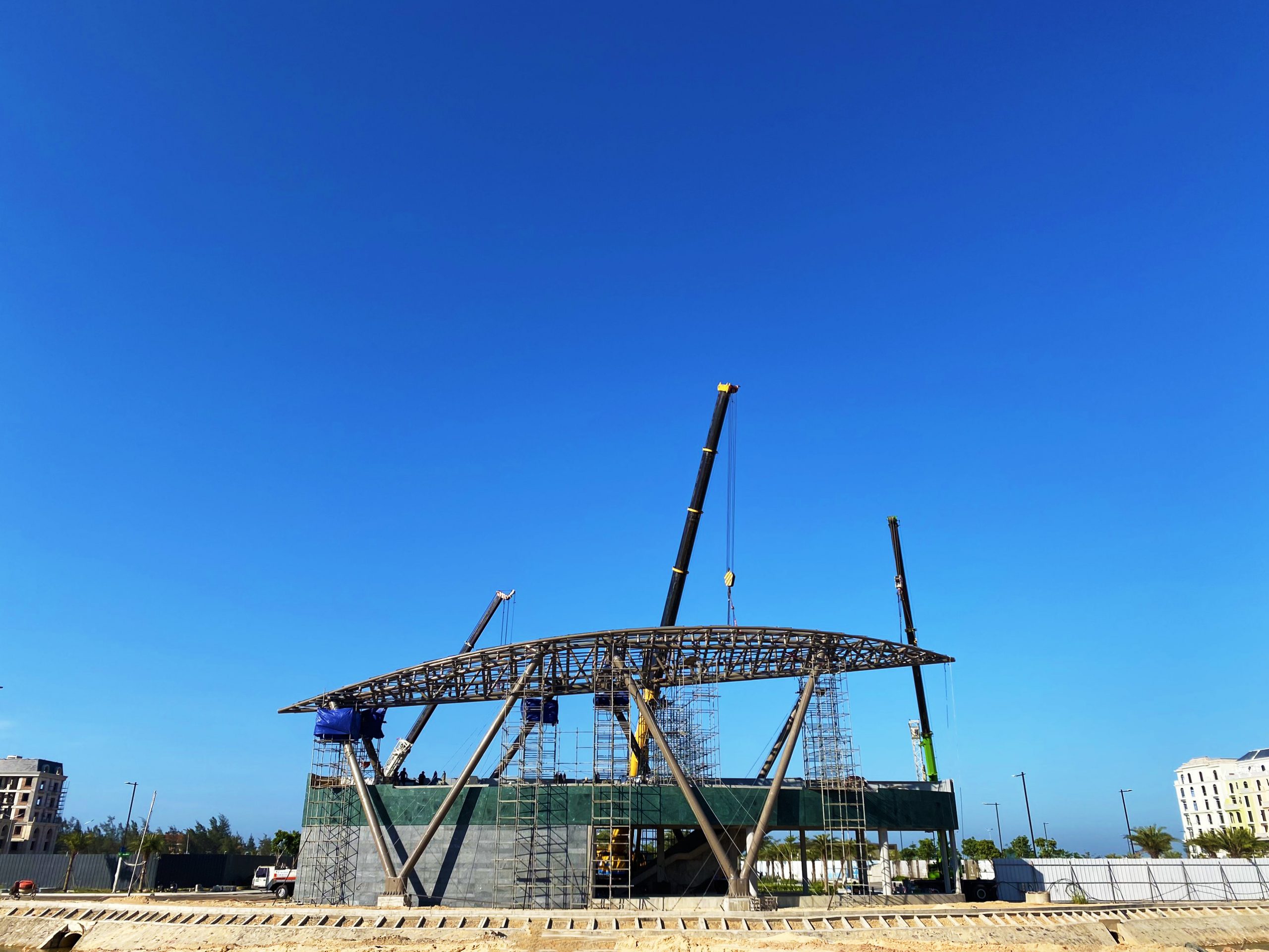 Bằng tất cả những nỗ lực, vào ngày 7/7/2023 đã hợp long thành công kết cấu mái che cách điệu với hình dáng tàu con thoi mạnh mẽ. HGPT tiếp tục để tại dấu ấn cho một tác phẩm nghệ thuật ấn tượng.