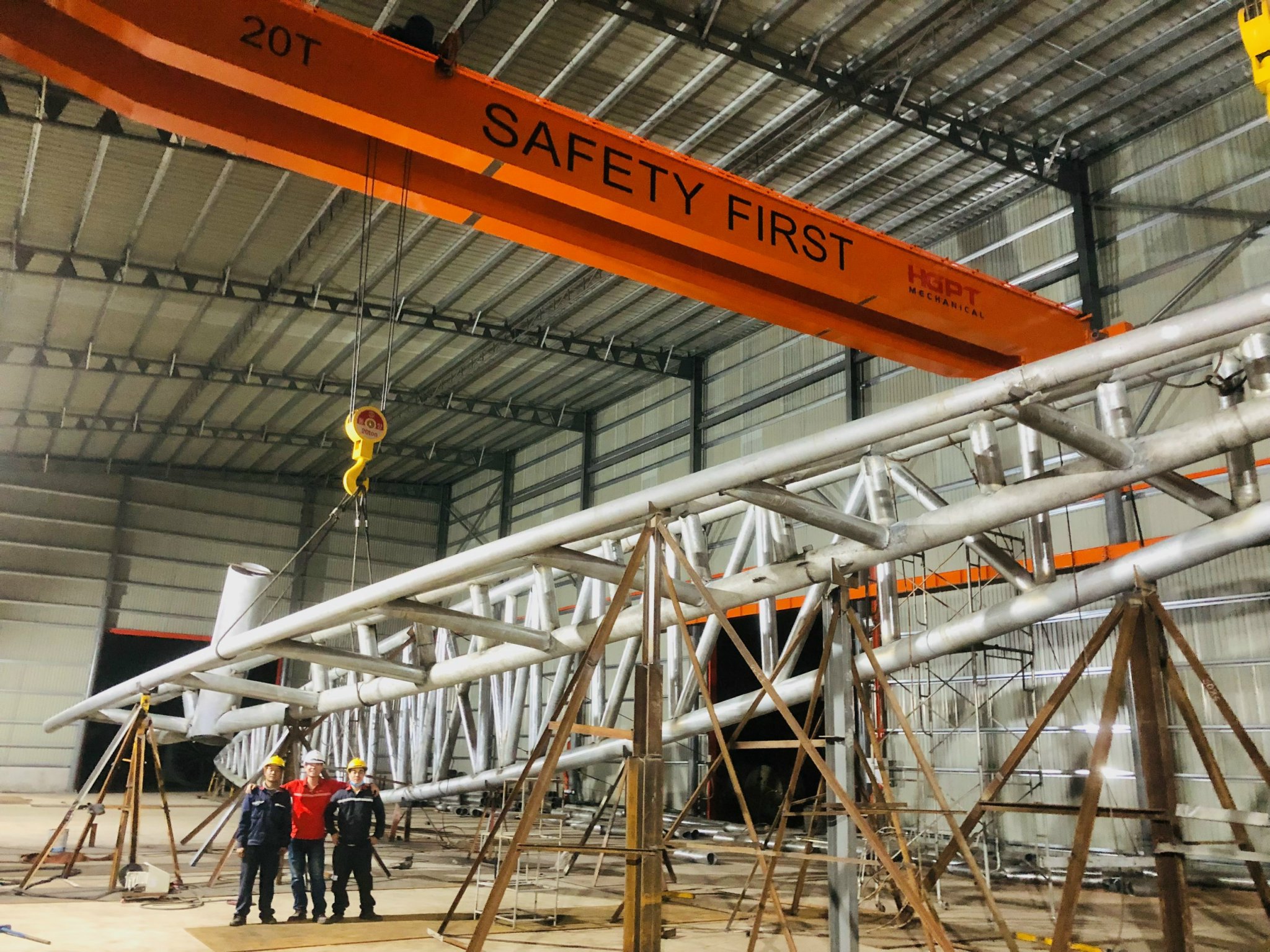 Từ khâu chế tạo, những thợ cơ khí lành nghề của HGPT đã cố gắng đảm bảo từng chi tiết của sản phẩm thực tế luôn bám sát thiết kế ban đầu. Mái che là tổ hợp kết cấu thép từ các ống thép có đường kính lên đến 600mm, với khẩu độ cao 18 mét dài đến 50 mét