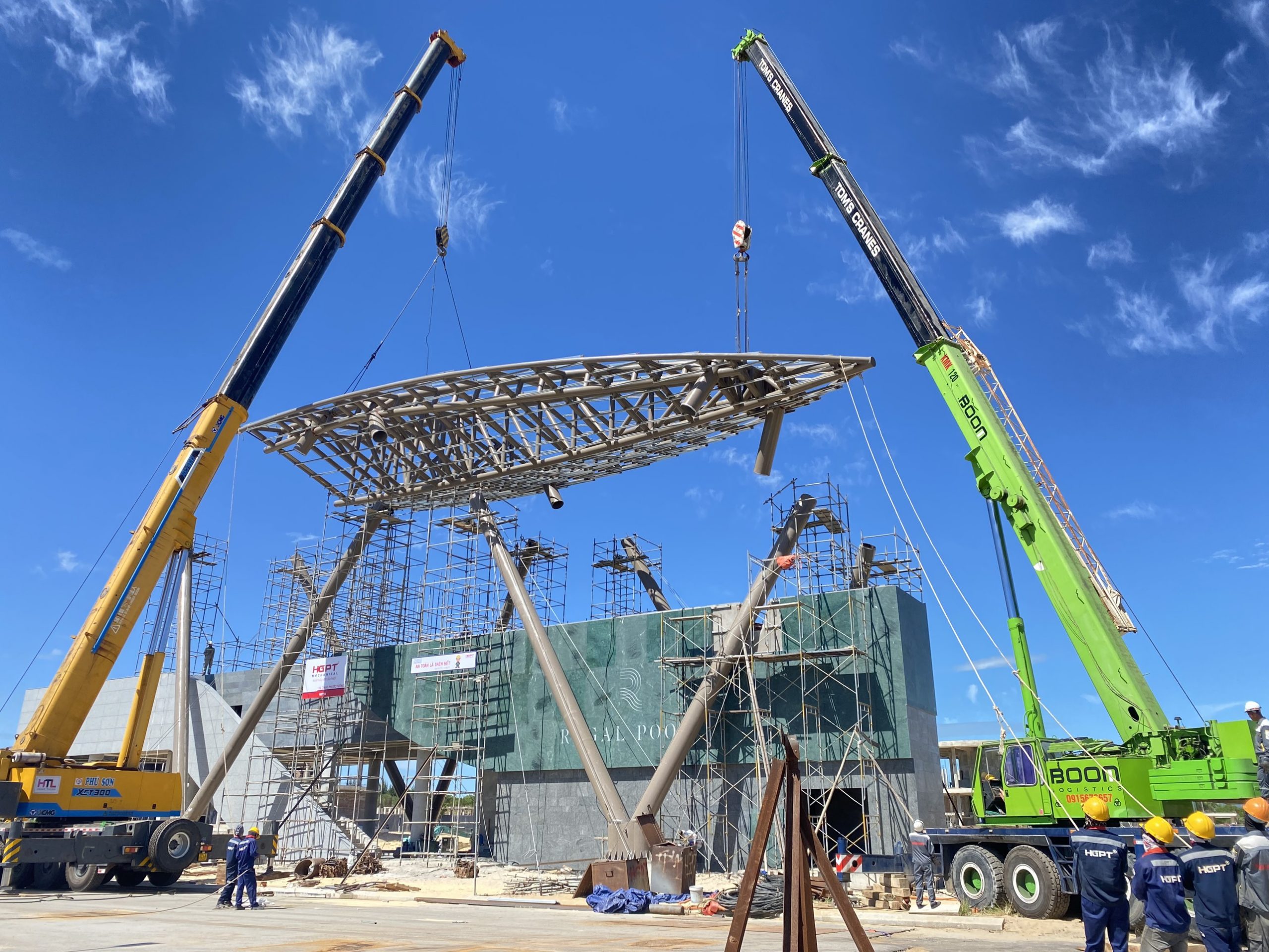 HGPT Mechanical xin cảm ơn chủ đầu tư, đơn vị thiết kế và đội ngũ nhân viên đã cùng đồng hành trong dự án Kết cấu thép mái che bể bơi Bảo Ninh 1 – Quảng Bình.